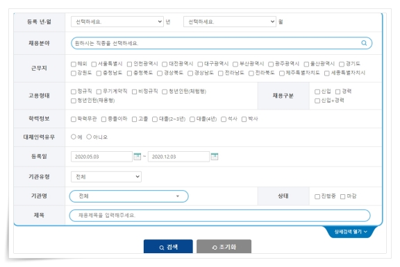 ▼ 채용분야, 근무지, 고용형태, 학력 정보 등 상세 검색 옵션을 이용해서 검색해 주세요.