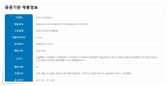 ▼ 상세페이지에는 공공기관의 채용정보를 상세히 확인해 볼 수 있습니다.