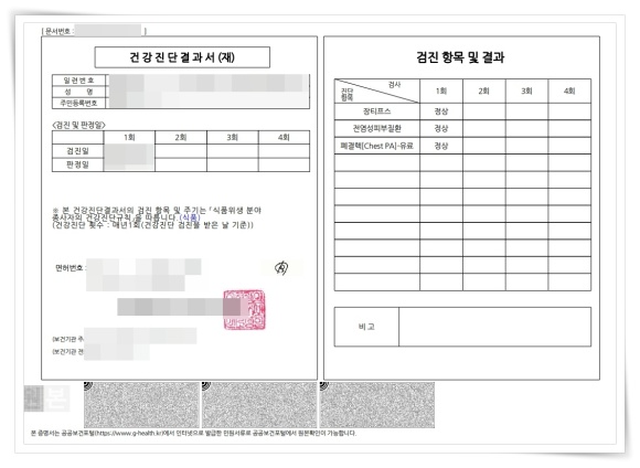 알바할 때나 취업할 때 보건증을 제출해야 하는 곳 많죠. 또는 해외에 나갈 때도 종종 보건증을 사용하는 경우가 종종 있습니다. 이 증명서는 식품에 세균과 바이러스가 들어가는 것을 막기 위해 검사를 통해 확인하려는 의도에서 사용되는데요. 식품 제조업체에서는 이 증명서 없이는 고용할 수 없도록 법으로 정해져 있습니다. 발급을 위해선 보건소에서 건강진단결과서를 작성하고 신분증과 함께 수수료를 지불해 접수해야 합니다. 다만 수령하거나 재발급은 보건소를 직접 방문하지 않아도 인터넷을 통해 쉽게 출력하실 수 있는데요.
