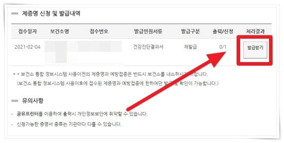 8. 마지막으로 "발급받기"을 클릭해 주세요.