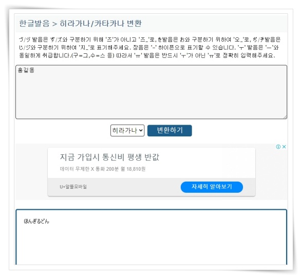 ▼ 한글발음을 히라가나, 카타카나로 변환하실 수 있습니다.