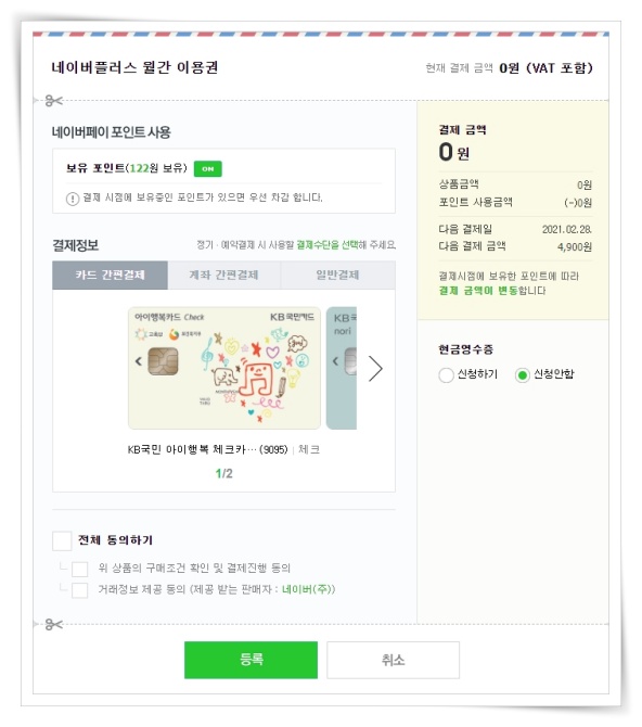 ▼ 카드 등록 후 결제 금액 0을 결제해 주세요.