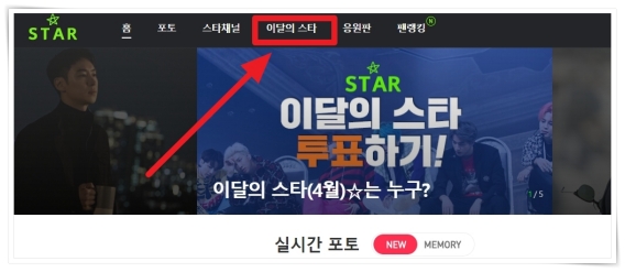 ▼ 홈페이지 상단 메뉴 "이달의 스타"을 클릭해 주세요. (바로가기)