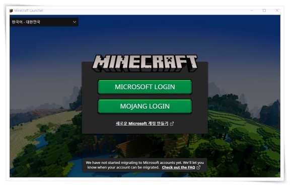 ▼ 다운받은 파일을 실행 후 마이크로소프트 또는 Mojang 계정으로 로그인해 주세요.
