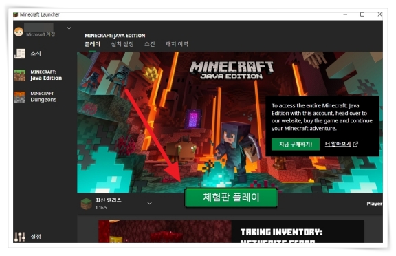 마인크래프트 체험판 PC버전 설치하기
